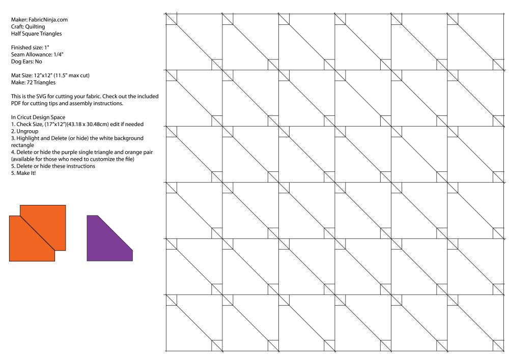 Plus, Quilt Building Block: Fast Cutting Half Square Triangles (HST) in 20 sizes 1″-10.5″ (Choose 12″  or 24″ mats.)  These files cut quickly using long lines and attached shapes. You can even choose “no dog ears” to eliminate that extra trim step.